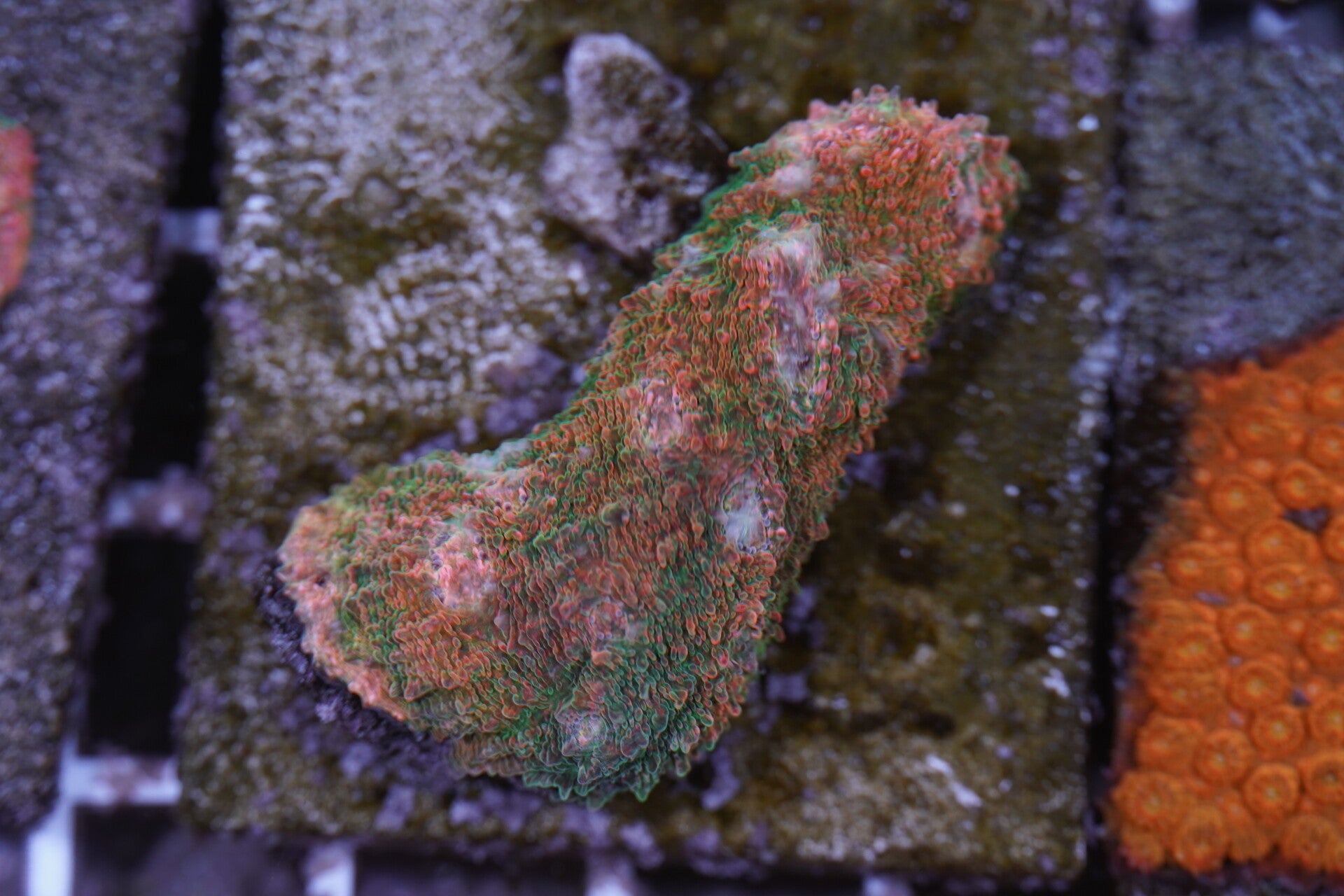 Deze 2 stekken zijn dezelfde soort maar ogen net anders. Zeer unieke kleurencombinatie van roze, met oranje en groene accenten.